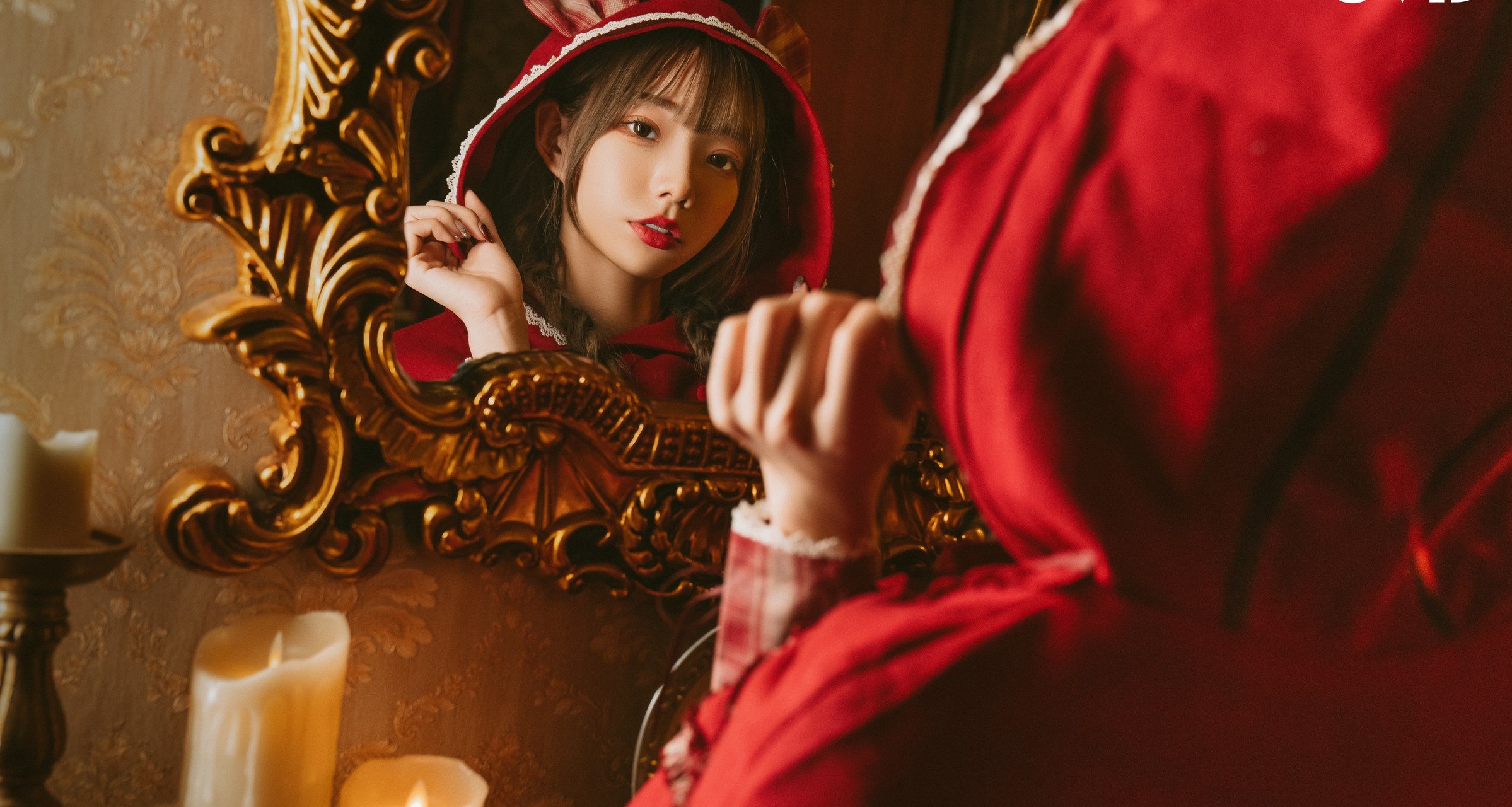 korean girl on sofa with gigantic caboose and orbs
